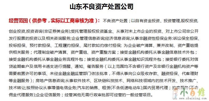 【山东XX不良资产处置有限公司】 5000万注册资金